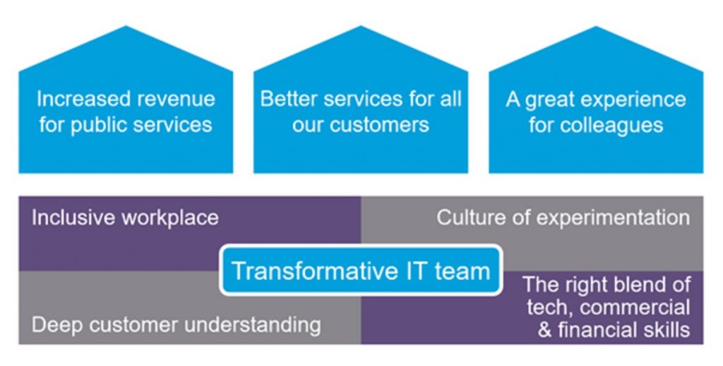 We are creating an organisation that’s business-led and technology enabled. We’re using technology to get an ever deeper understanding of our customers with insight analysis and joining up some of our data. We have loads to learn but we have started. We are beginning to encourage a culture of real innovation and experimentation and with an inclusive workplace where everyone can bring their best self, we are creating a truly transformative IT team.